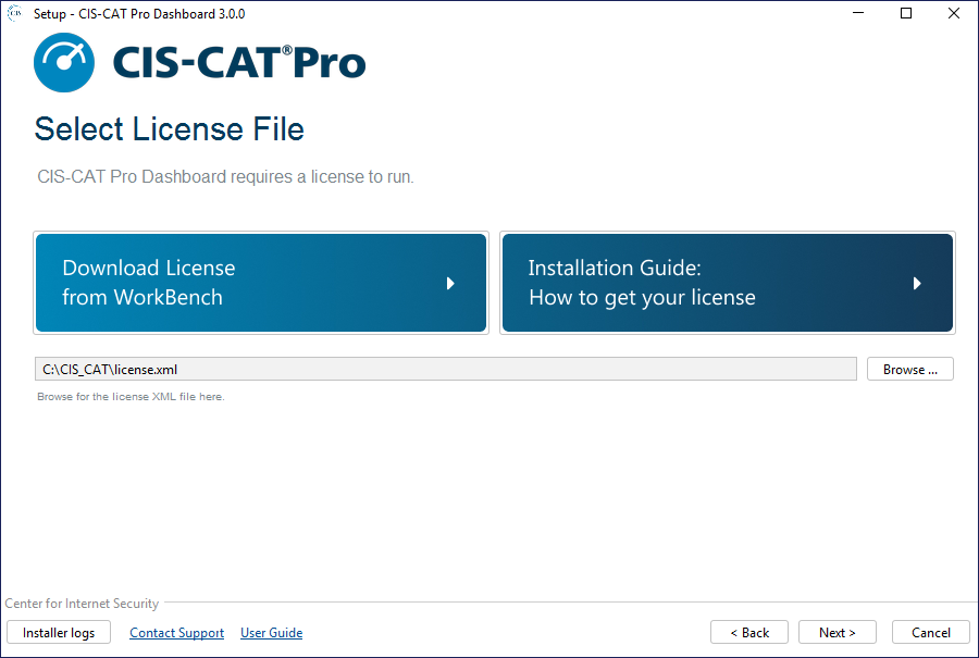 CIS-CAT Pro Dashboard requires a CIS SecureSuite license. Before initiating the installation process, download your organization's SecureSuite license. Obtain the CIS-CAT Pro Dashboard application from the CIS WorkBench.